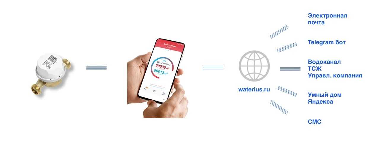 Сервис Ватериус доступен для пользователей приложения Элехант. Мы передаем показания в управляющие компании, электронную почту, смс и умный дом Яндекса.